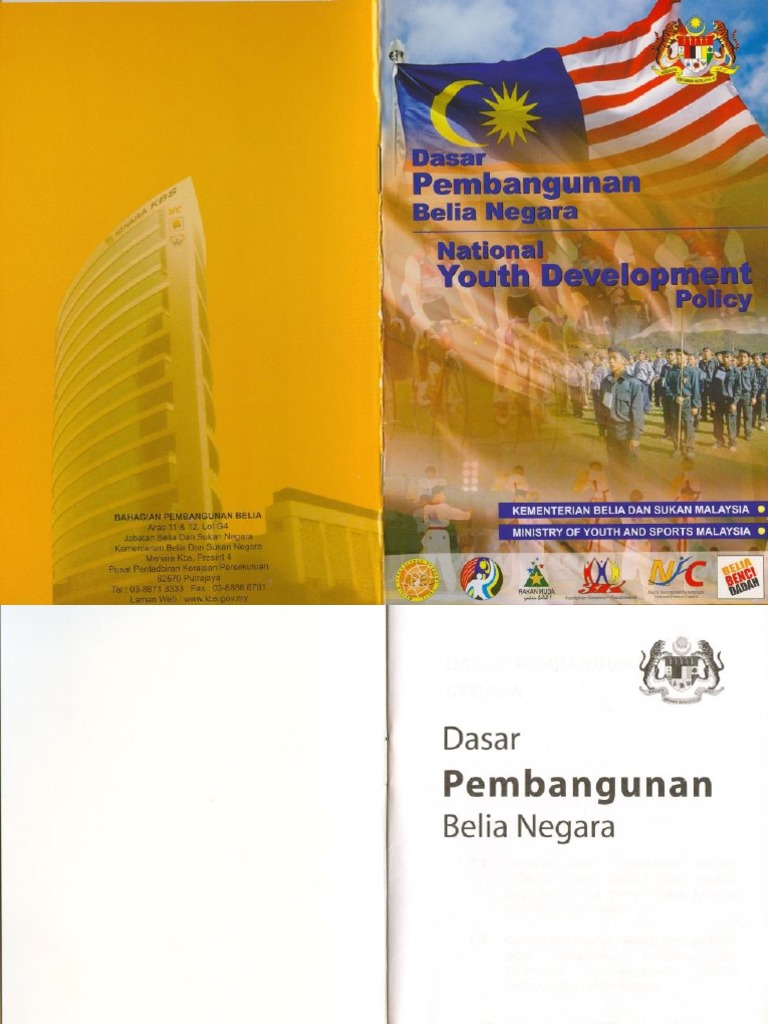 Dasar ini diwujudkan adalah untuk memastikan keupayaan belia menggembleng kekuatan, ketahanan pembangunan sosial. Digubal pada tahun 1985 sempena perayaan tahun belia antarabangsa yang pertama dikaji semula pada tahun 1997 dan dinamakan dasar pembangunan belia negara. Pembaca dapat meniru beberapa hal berikut dan. Khairul niqman bin md razip (a 137025)engku nur fatin azwani binti engku azman (a 137112) mohama… Menempa perubahan pembangunan belia negara 6.pdfmembangunkan belia kepada kerajaan dan kumpulan tertentu.