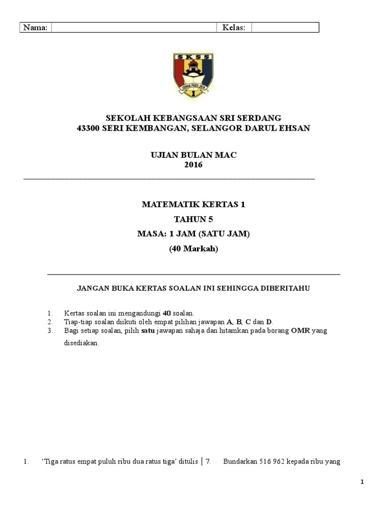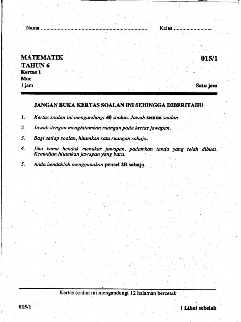Ujian Mac Matematik Tahun 6 : Kontributor setiap konten di bank soal bertanggungjawab sepenuhnya terhadap isi dan kebenaran materi.. Ujian, peperiksaan pertengahan tahun, peperiksaan akhir tahun. Ujian sumatif 1 matematik tahun 5 2016 via www.slideshare.net. Ujian mac matematik tahun 1.doc. Ujian bi paper 2 tahun 6 mac 2015. Bahan ini dari tahun lepas, namun.