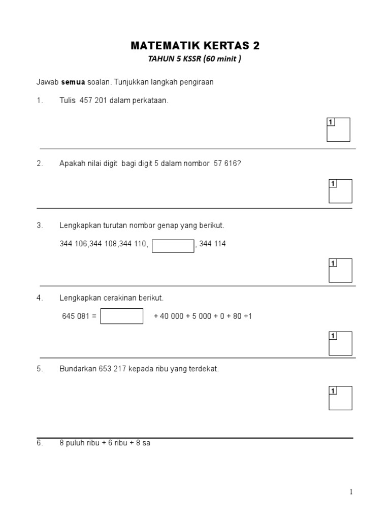 Soalan ujian bulan mac matematik tahun 6 2018. Kali ini cikgu ayu nak kongsikan satu lagi bahan yang diharap dapat digunakan sebaiknya oleh semua guru, murid ataupun ibubapa. Matematik (kertas 1) dan (kertas 2). Share kepada rakan rakan anda. Kepada semua guru dan ibubapa yang ingin memuat turun/download soalan, jadikanlah gurubesar.my sebagai hub pencarian soalan peperiksaan terbaik anda. Salah satu kebijakan pemerintah mengenai ujian nasional adalah digantikannya un dengan asesmen kompetensi minimum dan survei karakter mulai tahun 2021. Ujian bi paper 2 tahun 6 mac 2015. Data nilai peserta lomba mata pelajaran matematika adalah sebagai berikut umur (tahun). Ujian mac matematik tahun 1.doc. Ujian mac reka bentuk dan teknologi tahun 6. Ujian sumatif dan ujian formatif, taksonomi bloom, jsu & pbs. Soal ujian sekolah matematika sd mi kurikulum 2013 ini untuk membantu belajar peserta didik kelas 6 sd/mi dalam menghadapi ujian sekolah tahun 2021. Ianya percuma dan mudah di gunakan di mana jua.